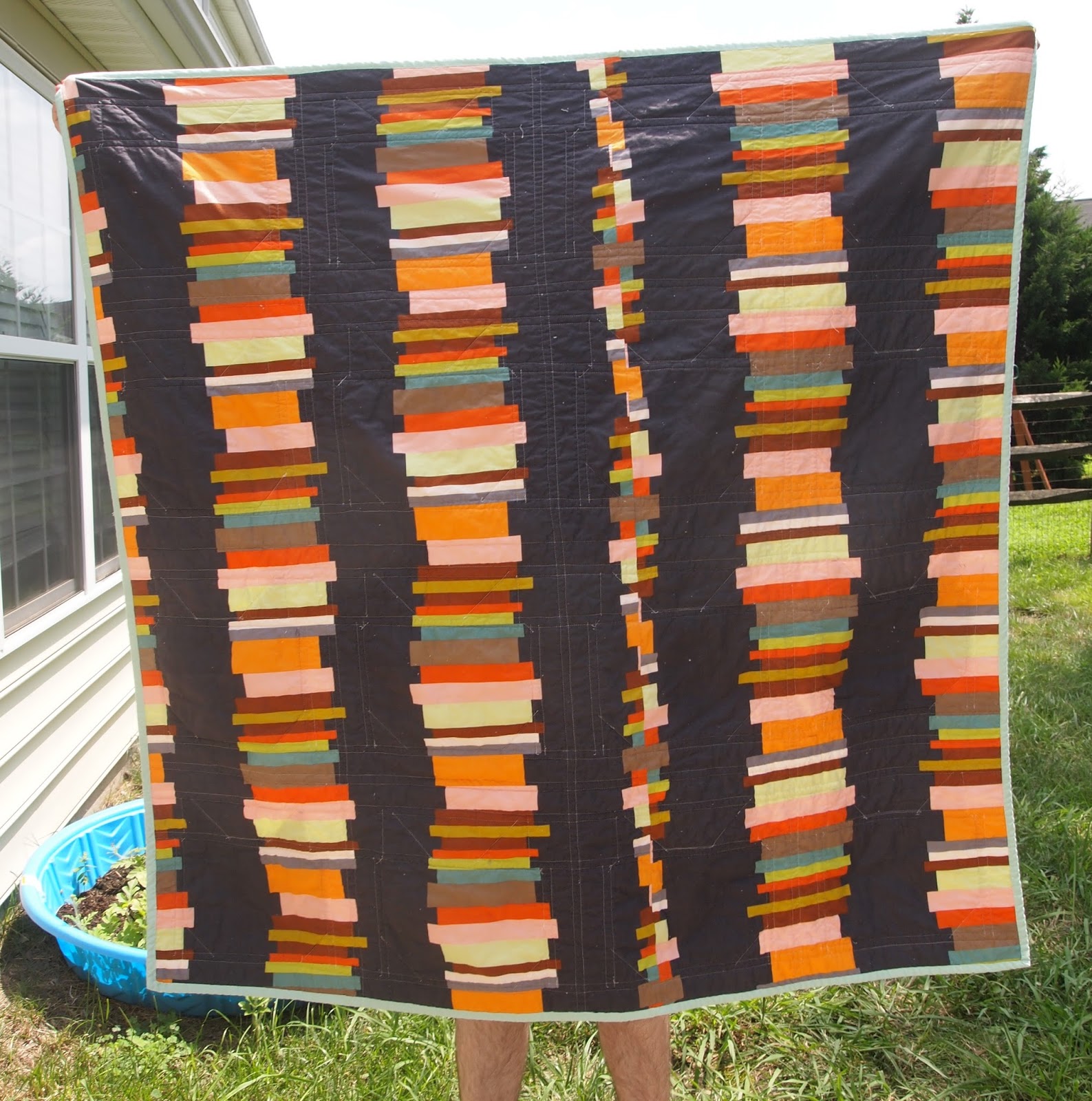 Piece by piece it came together and it was time to quilt and then bind. A fair amount went wrong. I had a fair amount of unpicking and fixing and before the baby I would have outlined each one for you with pictures. Post-baby I realize dwelling on and pointing out my faults and mistakes is not only a waste of time but also, occasionally, an exercise in reverse bragging. Not allowing myself to be proud or excited about each quilt because of imperfections only visible to myself.